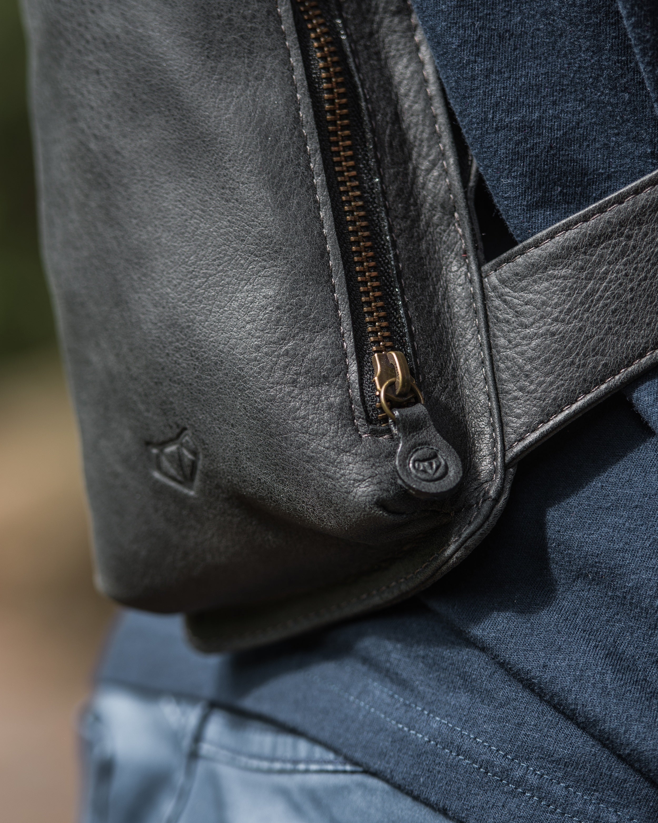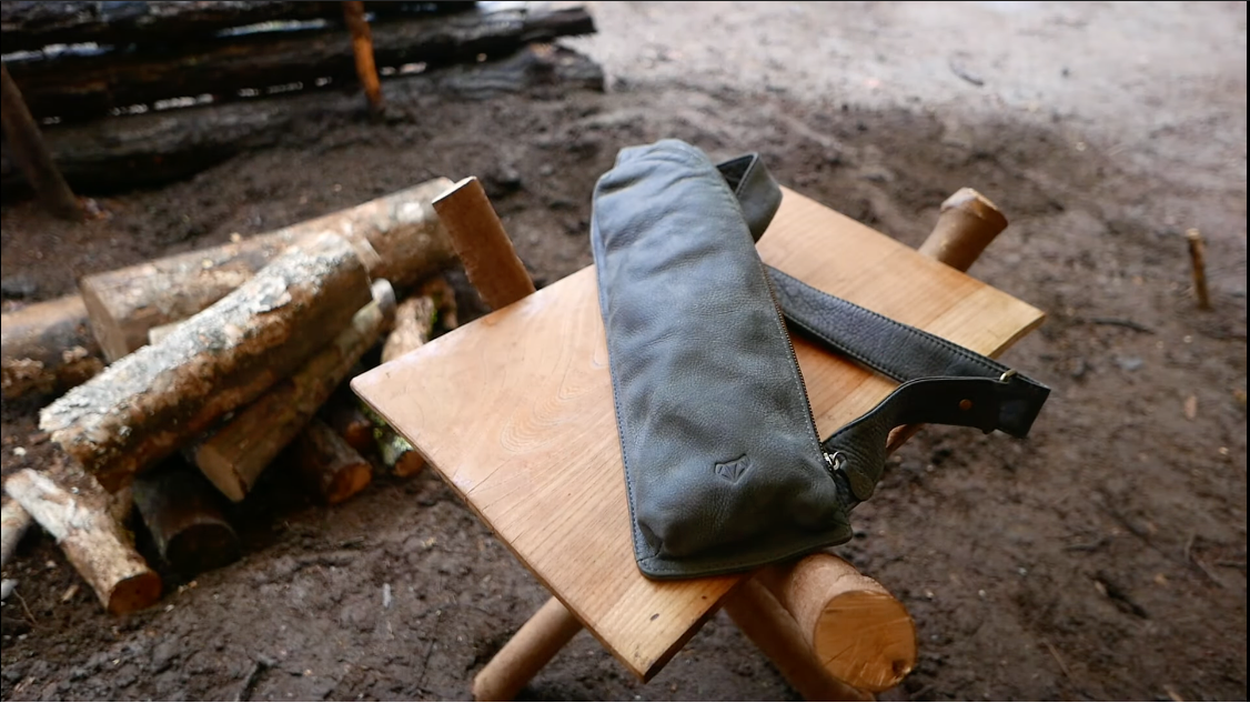 革の質感と、男らしい無骨なデザインはアウトドアのシーンでもよく馴染みます。