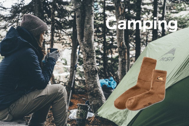 キャンプやフェス、ハイキングや山登りなどのアウトドアでは急な天候の変化や日没後の冷え込みに寒い思いをした経験はありませんか?そんなときキャメルウールの靴下があれば体温の低下を防ぐ防寒アイテムとして大変便利です。