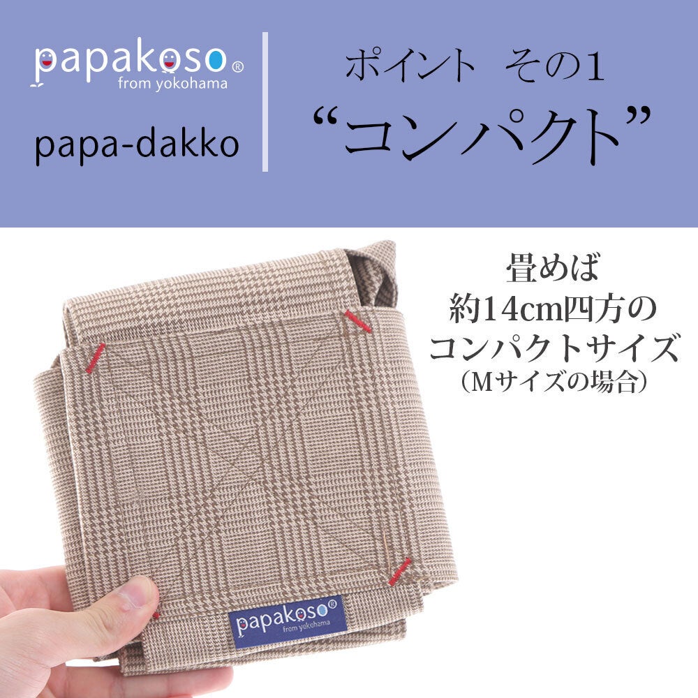 “パパ専用”簡易抱っこひも「papa-dakko(パパダッコ)はその名の通り、男性が使うことを前提にデザインした男性向けの抱っこひもです。