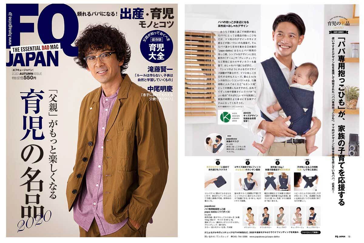 2020年9月1日発行「FQジャパン」の「育児の名品2020 」のコーナーで、papa-dakko最新モデルが紹介されています!