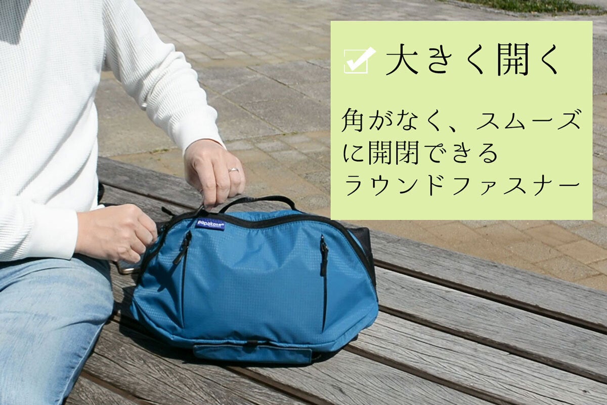 (3)前ポケットは左右どちらからもアクセスできる両開きタイプ。