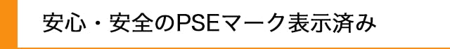 日本国内の安全基準に則って製造・輸入された事を示す「PSEマーク」を表示済みのものをお送りさせていただくので安心してお使いいただけます。