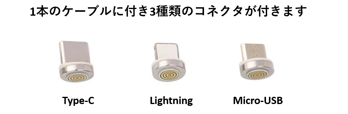 A :Type-C、Lightning、microUSBの3つの端子がケーブルに付属しますので、