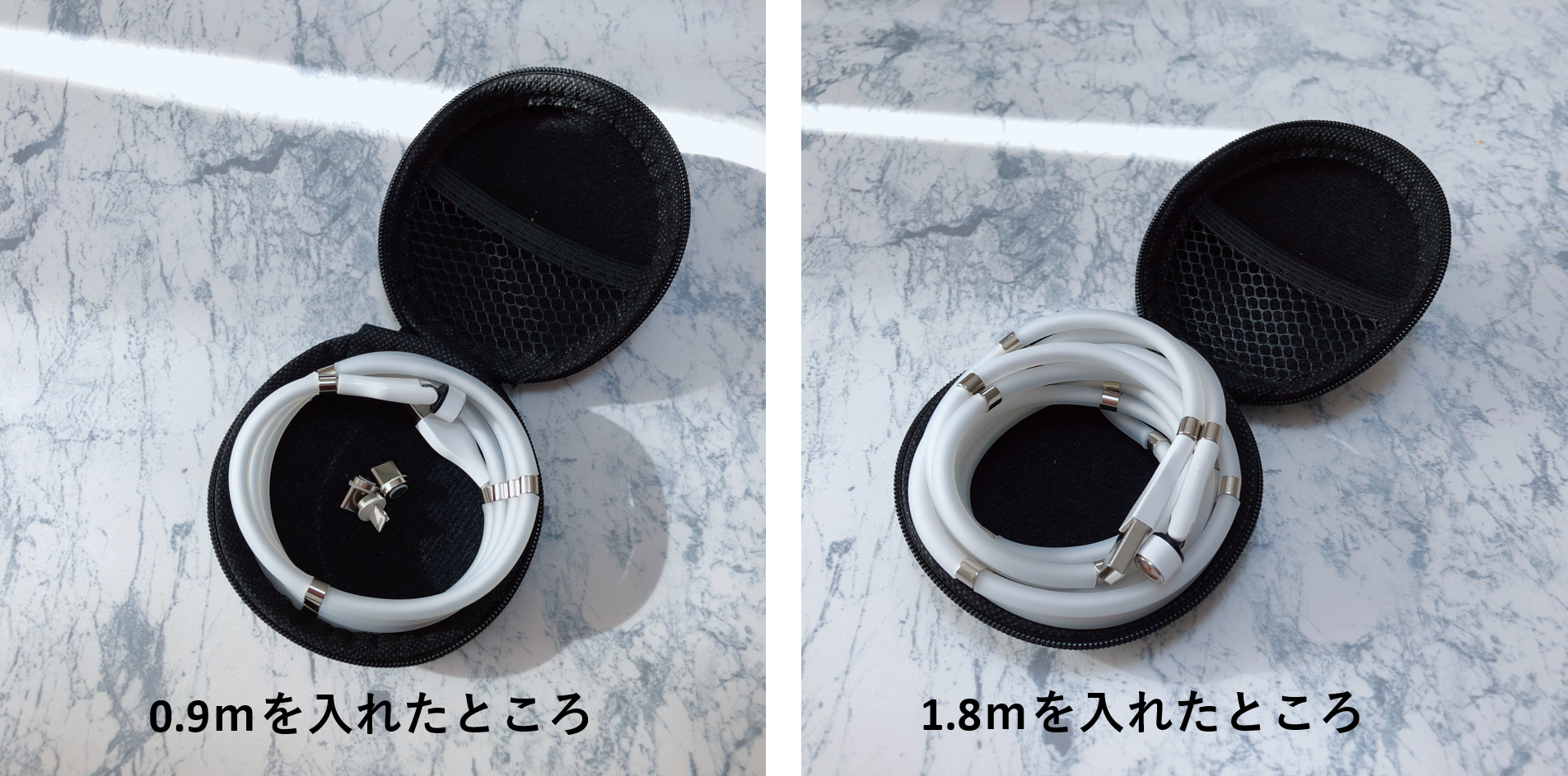 ケーブル、コネクタ、イヤホンなどを一緒に収納できる