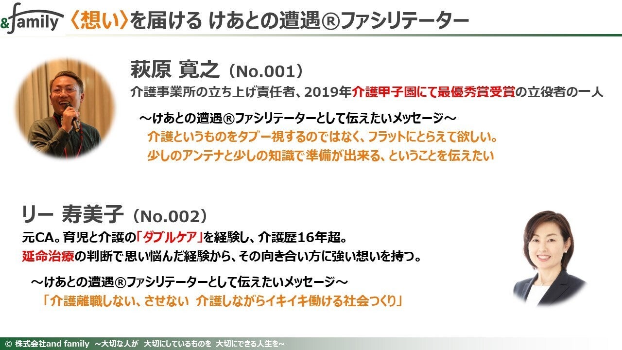 私は、「介護」のすそ野を広げるチャレンジをしております株式会社and familyの佐々木と申します。