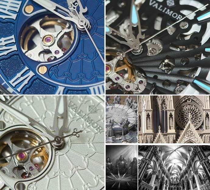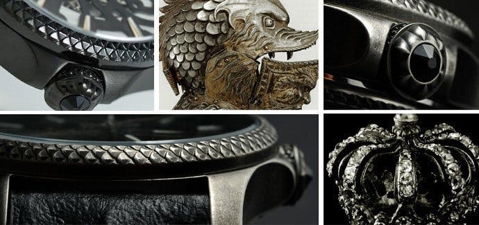 デザインは、中世の美術品や建築、剣や鎧などに見られる力強い象徴的な要素からインスピレーションを得ています。伝統的な西洋の建造物に影響を受け、最新の技術を駆使して、魅力的で独創的な時計を生み出しています。