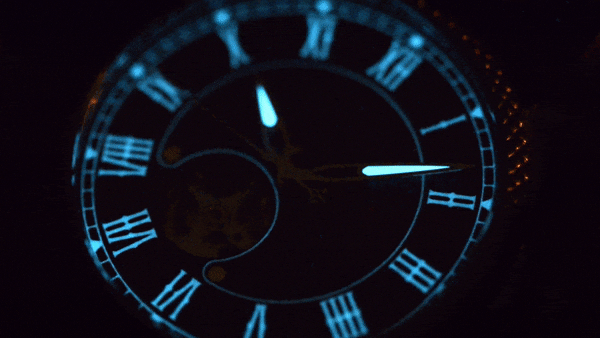 暗闇の中で輝く文字盤と針