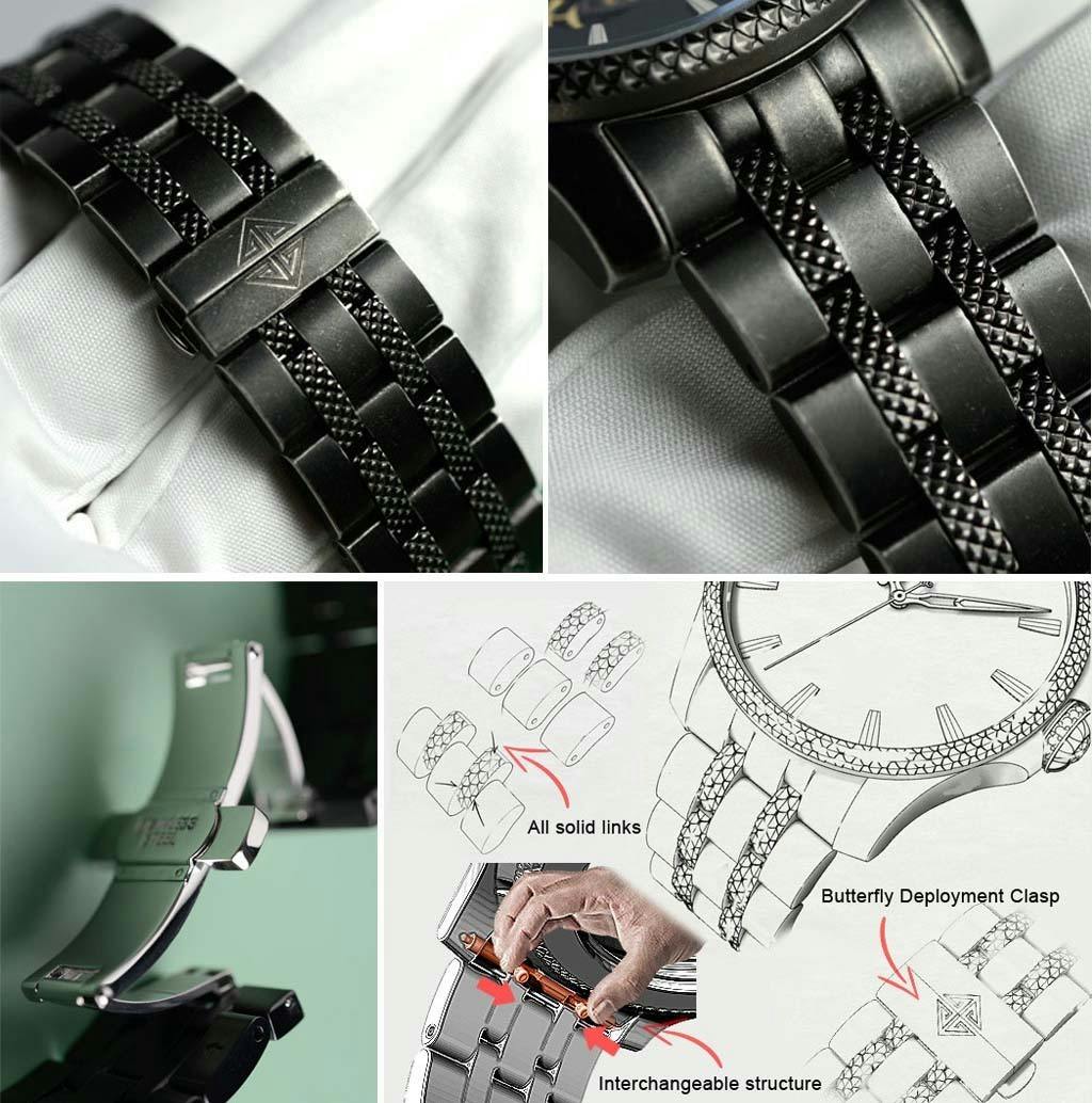 選び抜かれた材料高級クラスの材料と、卓越された専門知識や技術が交わり開発された腕時計。時計作りに精通したデザイナーとエンジニア・職人の才能あるチームによって全ての材料を選んでいます。1つ1つのパーツは時計の最高品質レベルにあります。素晴らしい時計をご提供します。