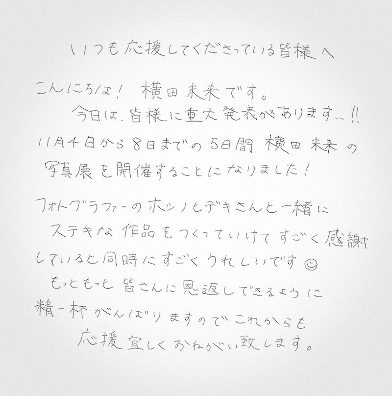 公式Instagram:https://www.instagram.com/mirai_yokoda/