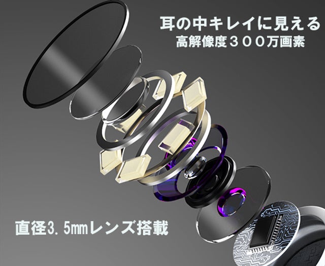 「T1」は直径わずか3.5mmのレンズが搭載されており、300万画素の高画質カメラでリアルタイムに耳の中を映像に映し出すことができます。内蔵されているカメラは超小型サイズなので、お子様から大人までの耳にもしっかり対応できます。