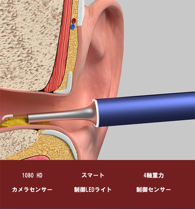 4軸重力センサー、1080P HDカメラ、スマート温度制御が装備された「T1」は耳の中の位置情報を正確に把握し、どの角度からも正確に、簡単に耳掃除を体験することが出来ます。