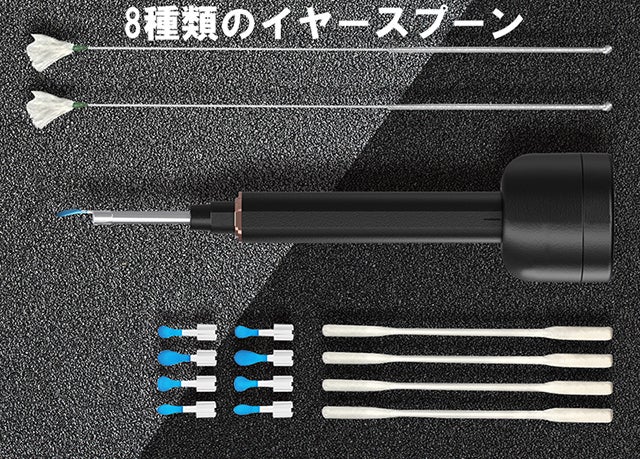8種類のイヤースプーンが付属され、耳掃除をより快適にお楽しみいただけます。