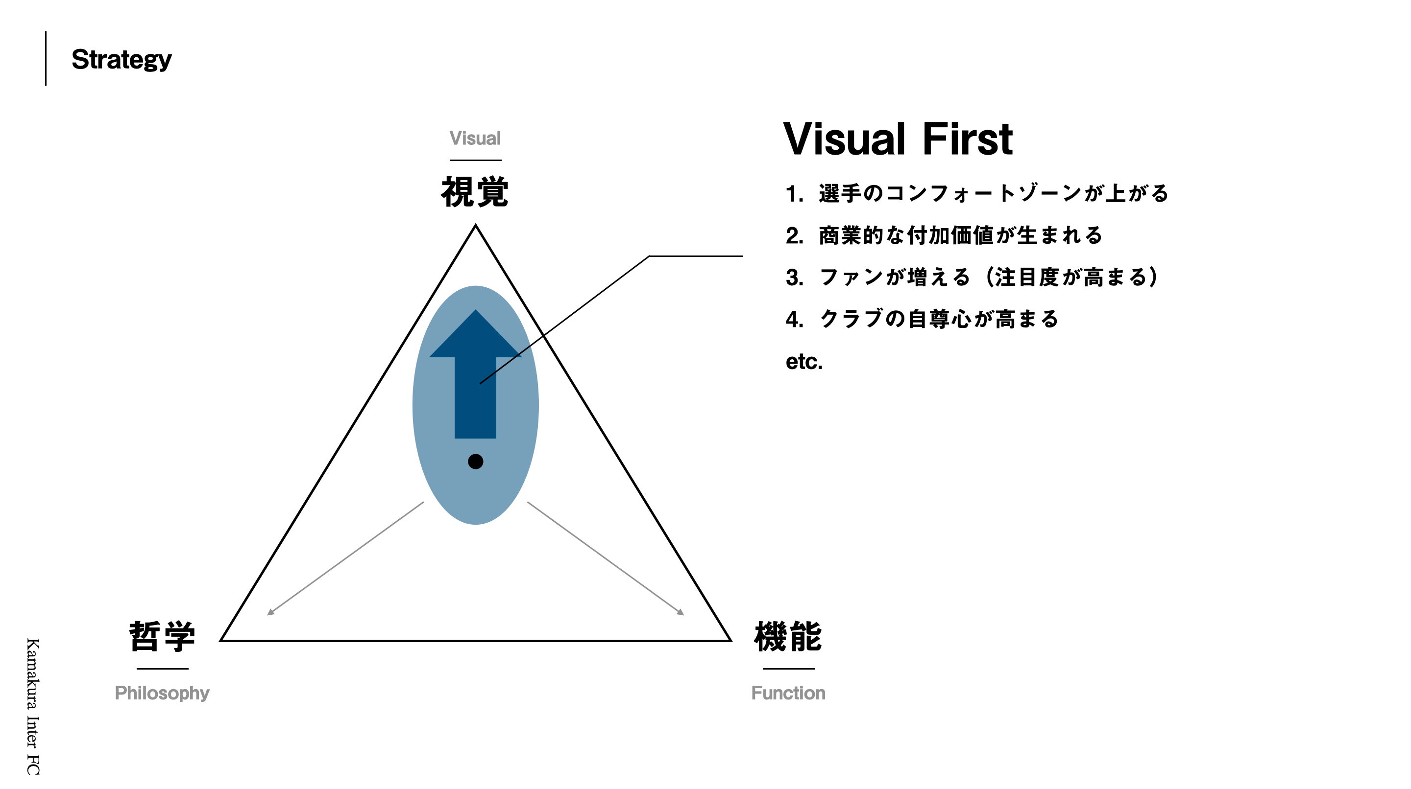 そして私たちは、鎌倉インターナショナルFCがこれから行っていくブランディング戦略を「ビジュアル・ファースト」という風に呼んでいます。