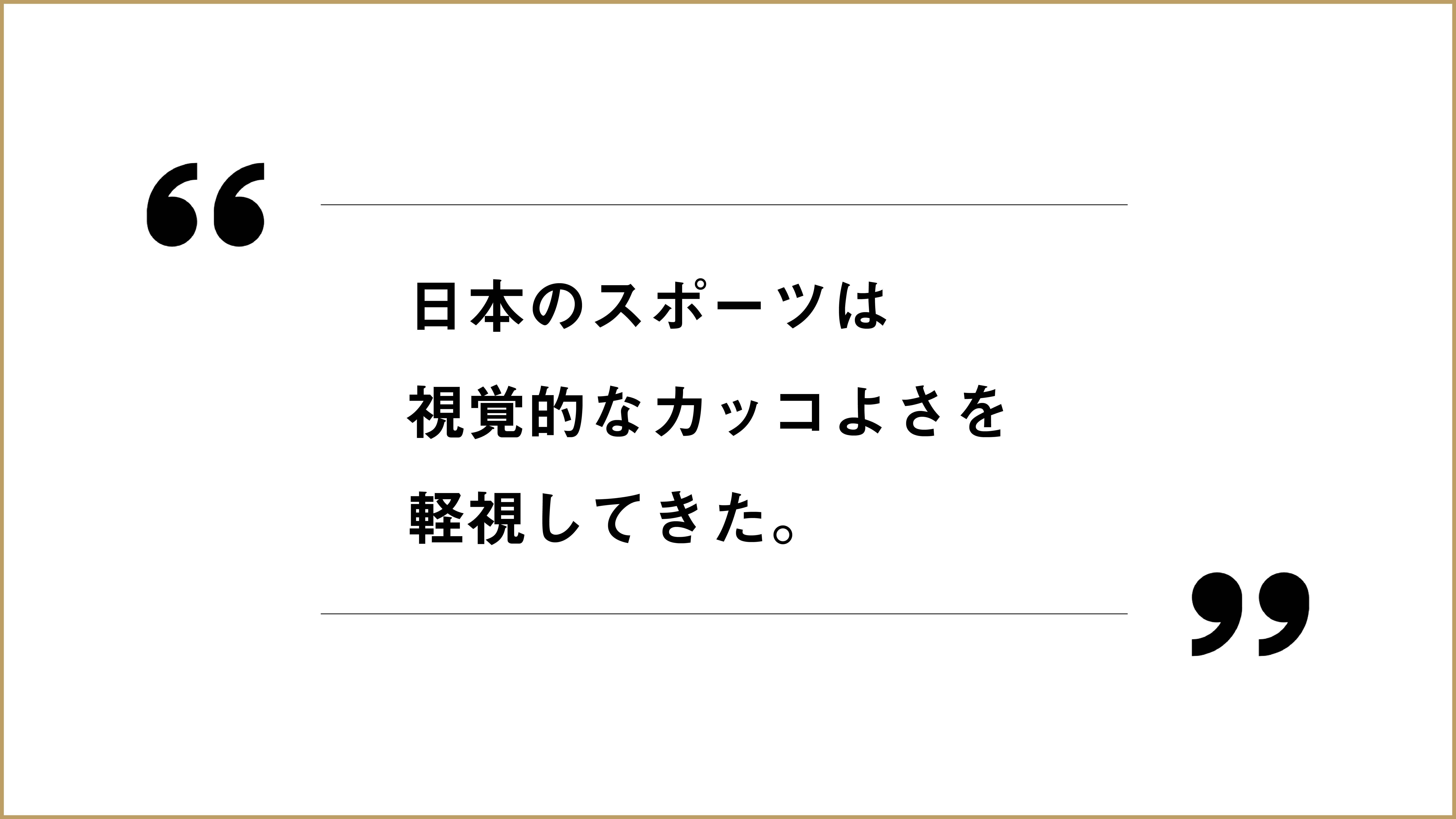 それぞれの「美しさ」を追求し、そこに一貫性を持たせることを、つまり「カッコいい(クール)」と定義しています。日本のスポーツは今まで「視覚的なカッコよさ」を軽視してきたのです。それが、世界のスポーツシーンに比べて、日本のスポーツがクールに映らない原因だと考えています。