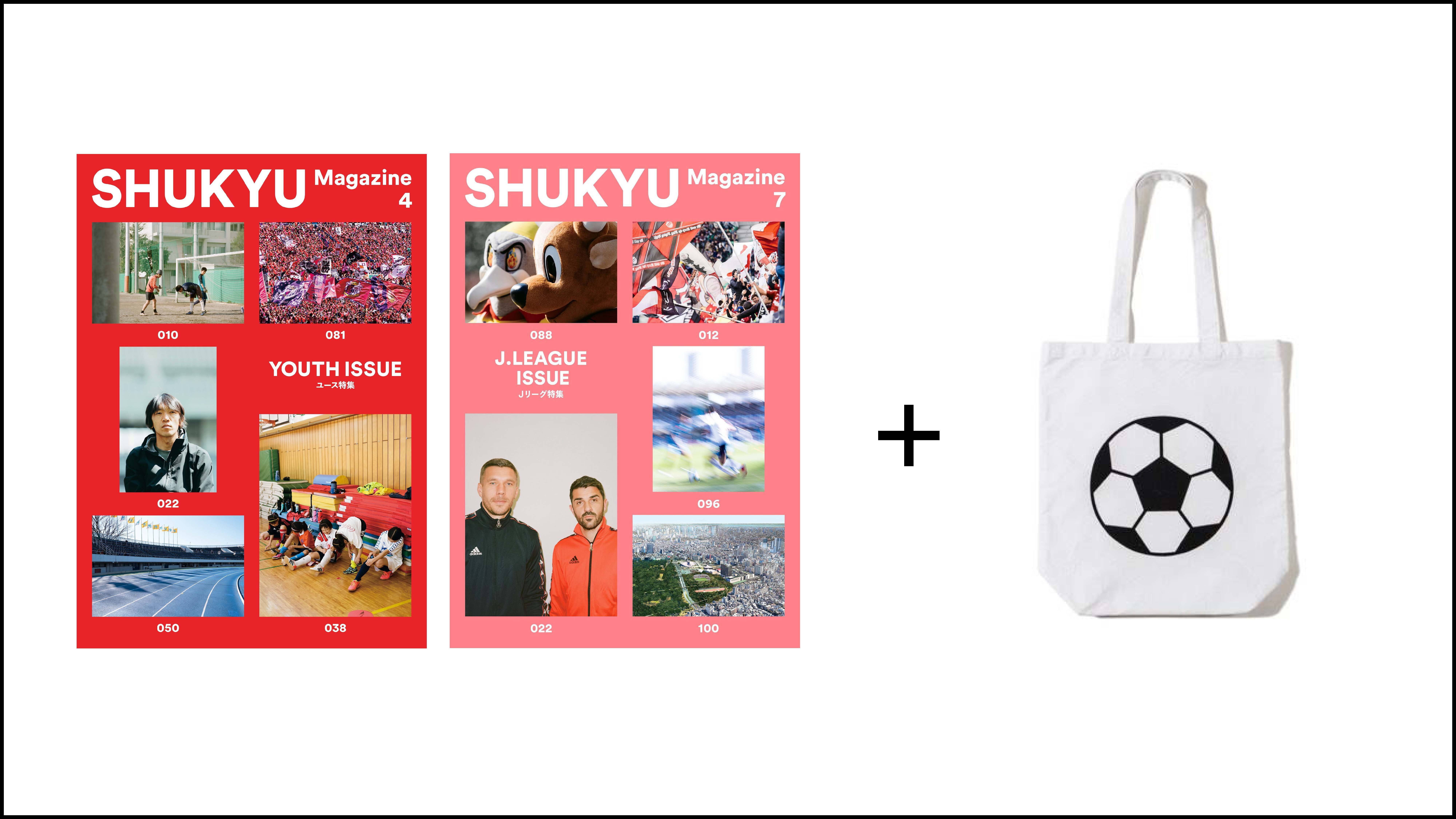 【6,000円】東京を拠点に活動するフットボールカルチャーマガジン『SHUKYU Magazine』が、今回のクラウドファンディングの為だけに用意してくれた「雑誌2冊+トートバック」の特別セット。