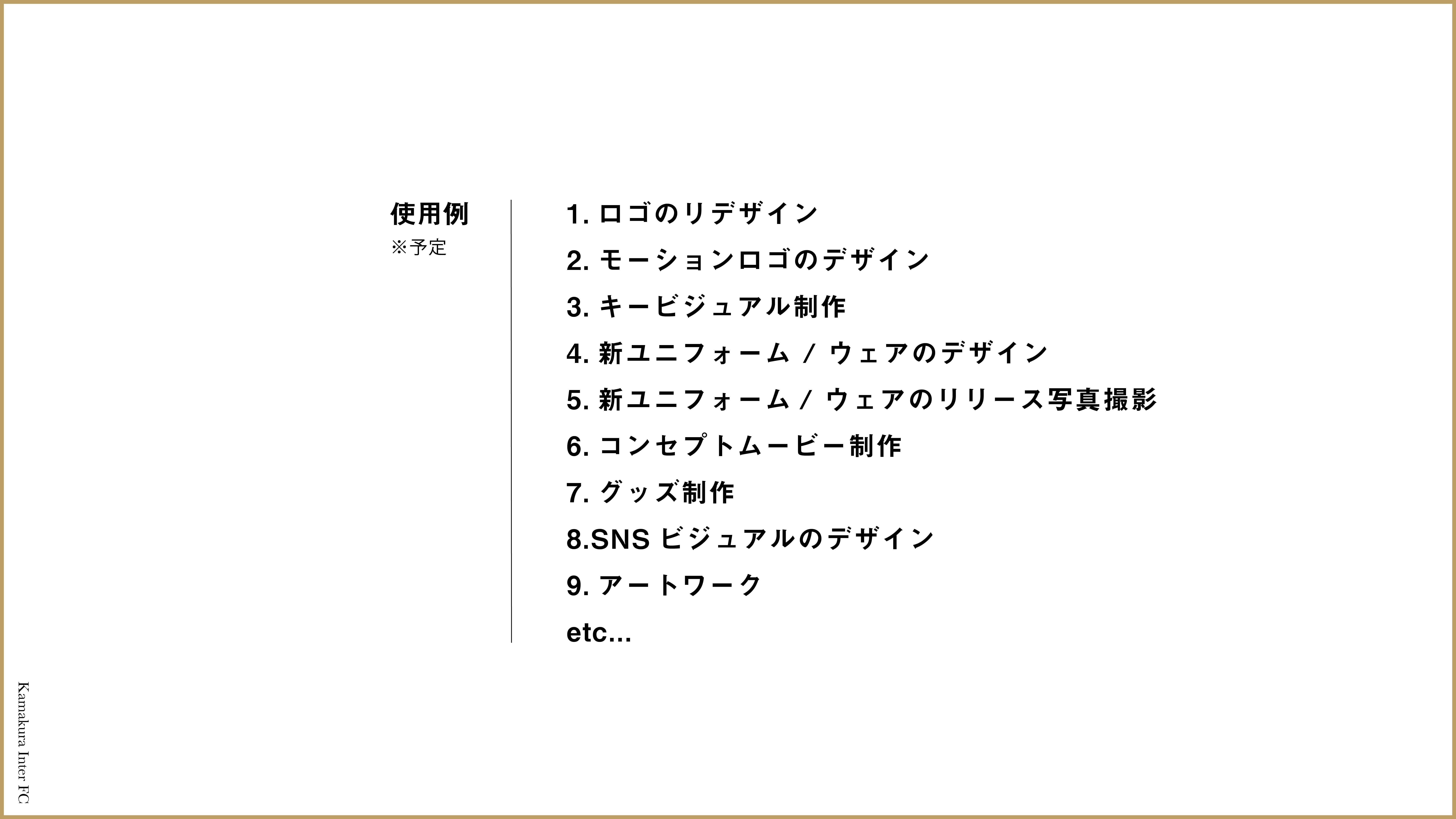 支援していただいたお金は、クラブのリブランディングにおける、下記のようなビジュアルに関わる部分に使わせて頂きます。ロゴのリデザイン、ユニフォーム・ウェアの新調、ソーシャルメディアでのコンテンツ制作、またはマーチャンダイジングなどが、それに当たります。