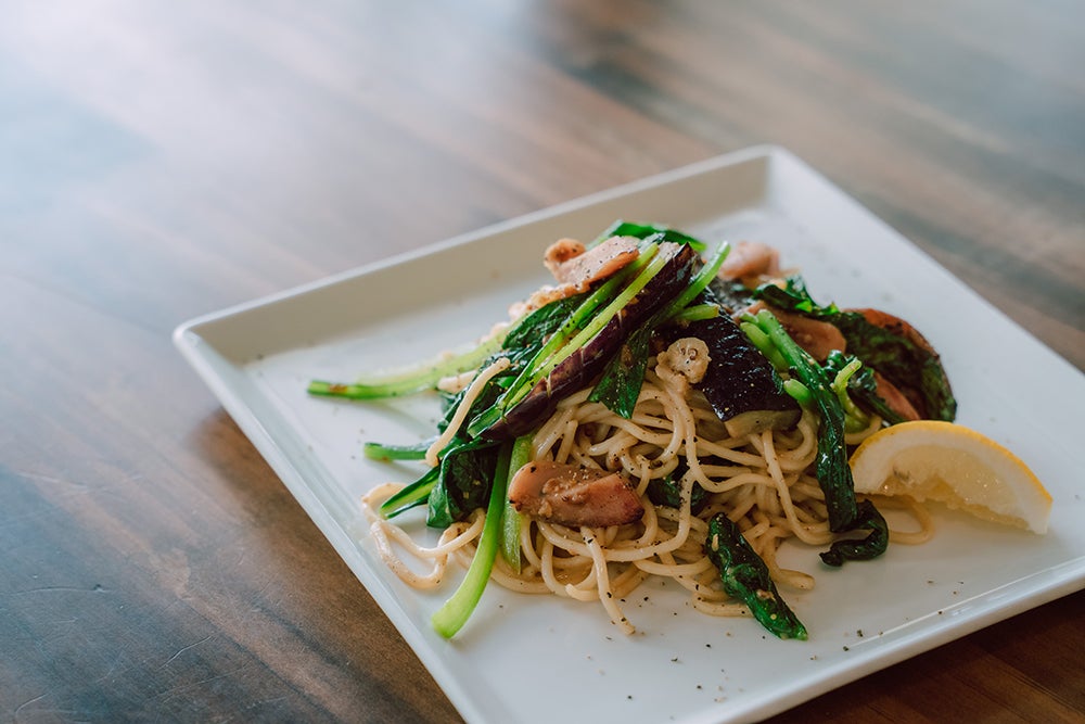 ほかにも「野菜たっぷり醤油こうじパスタ」など、野菜をふんだんに使ったメニューをお出ししていて、セットメニューでも、季節折々の野菜を並べたサラダプレートや、カットした野菜のはしっこまで大事に使ってコトコト煮込んだボーンブロススープなど、野菜、野菜のオンパレードです。
