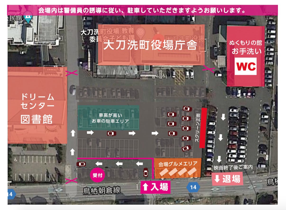 2021/03/12 16:13タチアライドライブインシアターは雨天でもイベント開催となります!!^^今の所、明日午後からお天気は晴れ予報です!!*<スケジュール>16:30 開場(スタッフの誘導で順番にご案内します)/ 会場グルメ&キッチンカーOPEN!18:15 ご案内・オープニング・スペシャルムービーの上映18:30 映画上映開始(約120分間)20:30 終了/退場(前列のお車から退場口へ順番にご案内します)お車は基本的にお越しいただいた順で駐車して頂きます。お時間には余裕を持ってお越しください*〜会場のご案内とコロナ対策について〜<入退場について>・お車に乗ってご入場下さい。・ピンクの鑑賞券を受付でご提示頂き、スタッフの指示に従いご入場下さい。・場内は最徐行でゆっくり運転を心がけてください。・再入場、途中退場はご遠慮ください。<お手洗いについて>・役場庁舎正面から見て右手、ぬくもりの館(社会福祉協議会施設内)お手洗いをご利用下さい。<コロナ対策について>・グルメ購入やお手洗い等で車外でられる際はマスク着用をお願いします。・定期的な車内の換気をお願いいたします。・フードやお手洗いで列ができた場合は距離をとってお並びください。<その他>・お持ち込み頂いた飲食のゴミは各自でお持ち帰り頂きますようお願いします。・映画の写真・動画・録音・撮影はご遠慮ください。・当日の記録用にカメラマンが入ります。町の広報紙、インターネット等で開催報告に使用させていただく予定です。ご了承お願い致します。それでは明日は大刀洗町までお気をつけてお越しくださいね♪皆さまにお会いできる事を楽しみにしております! もっと見る