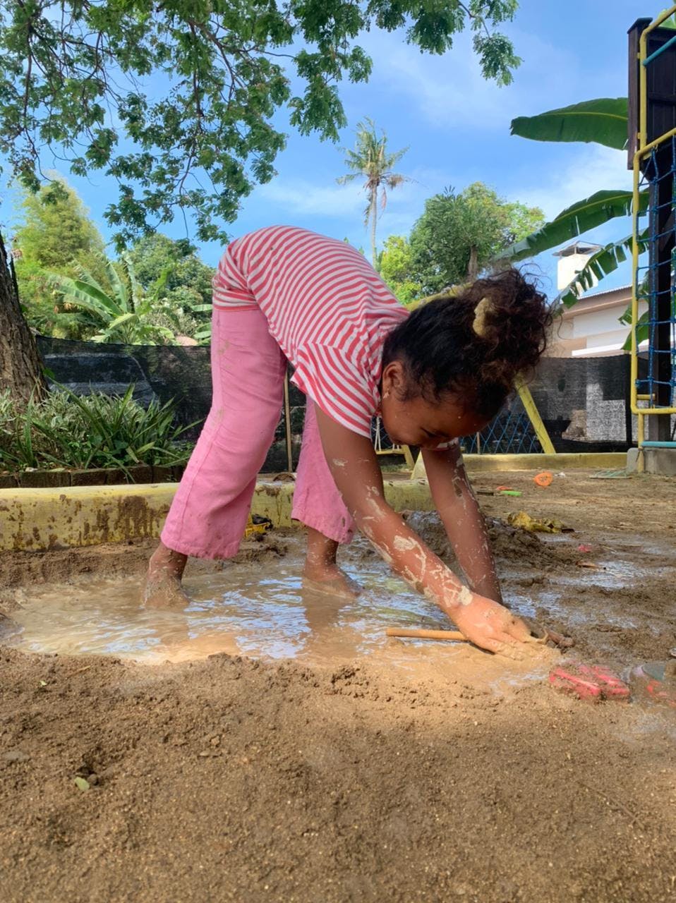 「遊びを大切にし、子どもの根っこを育てること」をコンセプトに進めており、コロナショック以前の生徒数は約60人、インドネシア人をはじめ、エストニア、イタリア、スペイン、オランダ、オーストラリア、アメリカ、日本、韓国、中国、シンガポールといった世界中から人種や宗教問わず多くの子どもが集まる場所となっています。