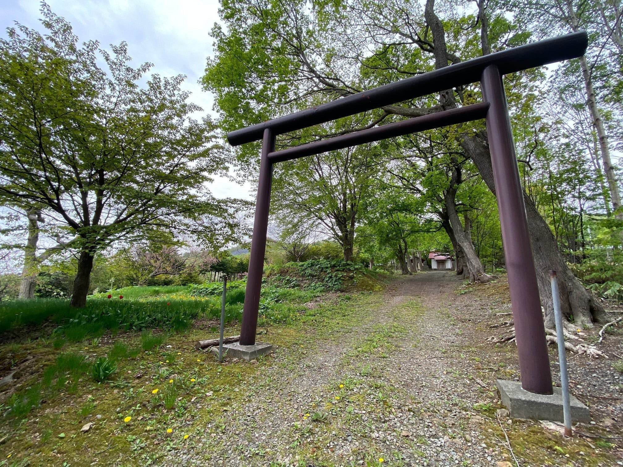 家の目の前には古い神社があり木々に囲まれています。