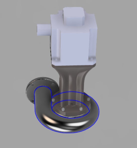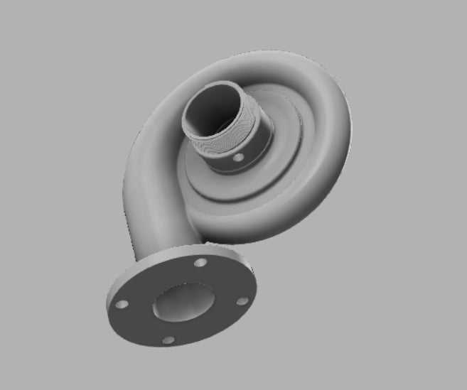 取り付けた配管から水が流れ渦巻状のケーシング部分に水が流れ込みます。