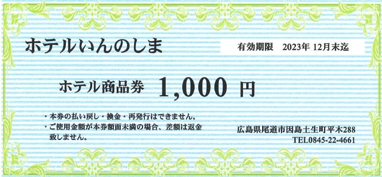 リターン①支援金額1,000円「ホテル商品券1,000円」