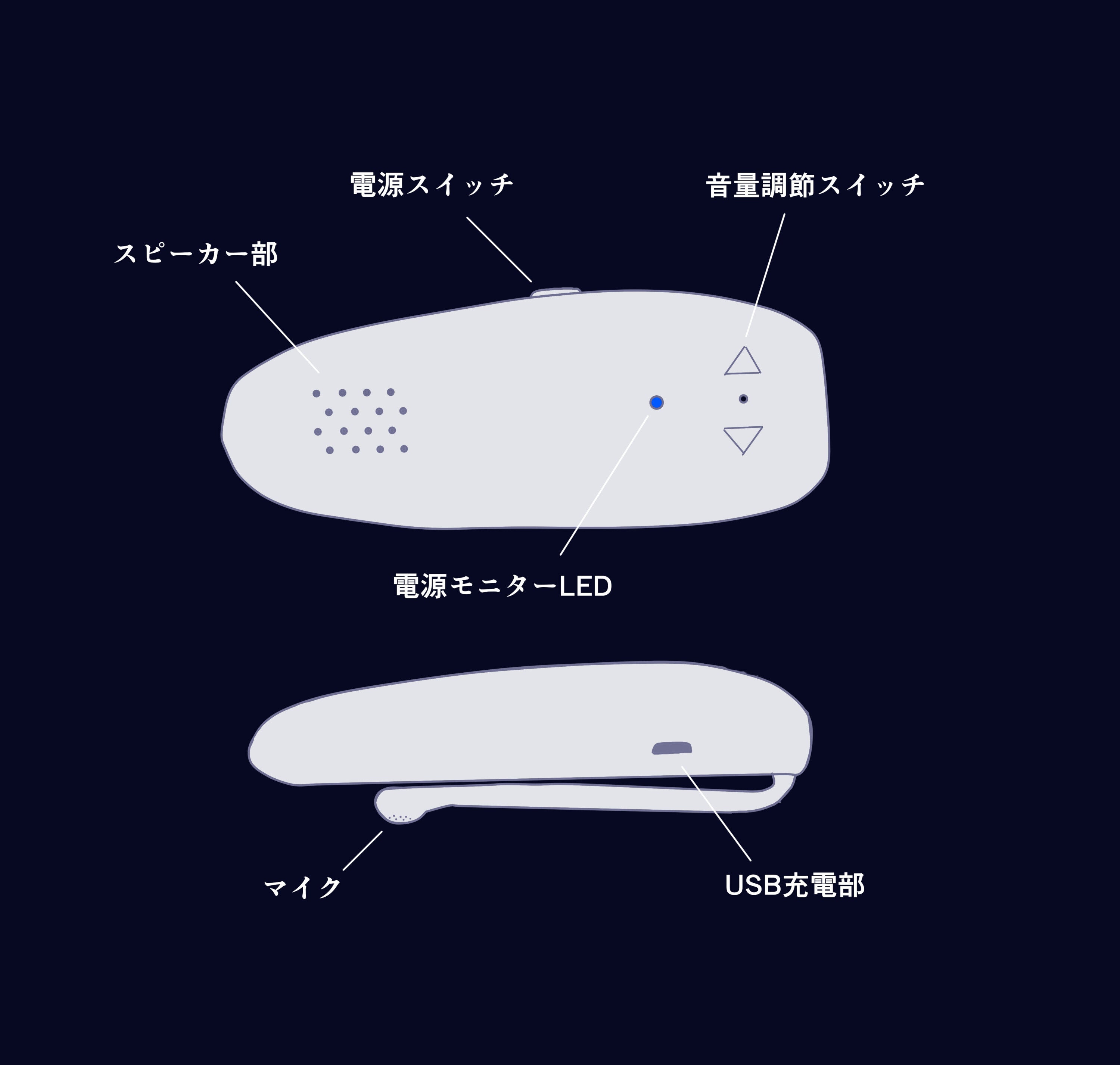 小型スピーカーユニットは小型スピーカー、アンプ、バッテリー、電源回路、電源スイッチ、ボリュームスイッチを有し、小型マイクユニットは小型マイク、マイクアンプを有するものとします。
