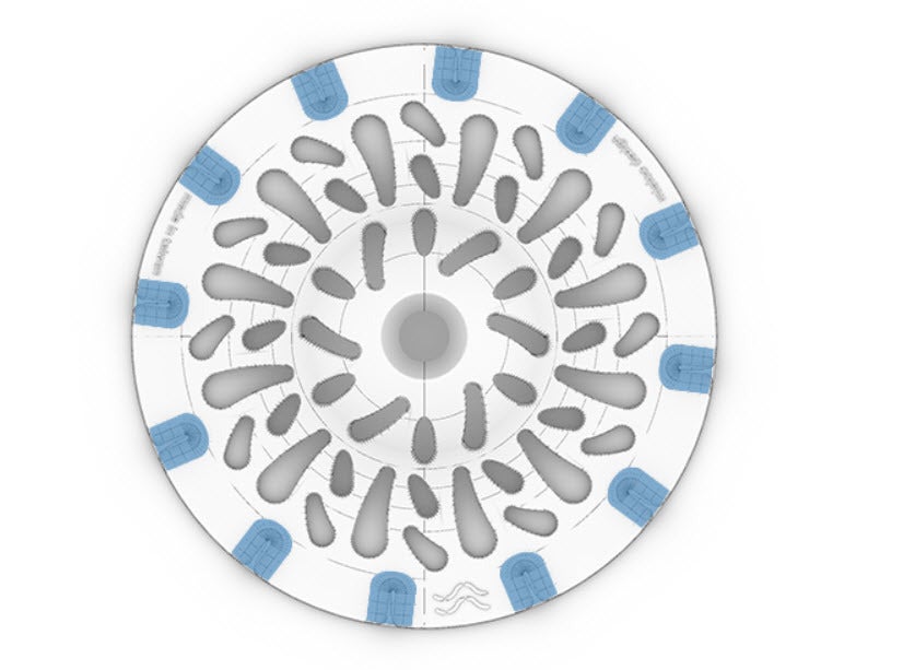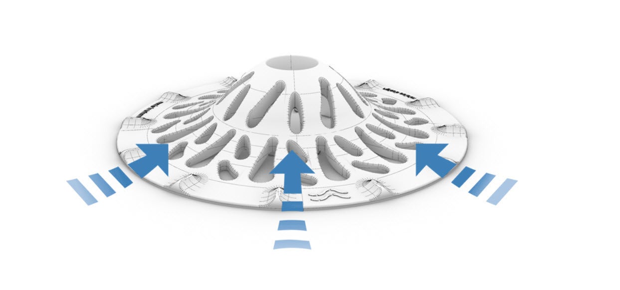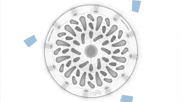 周縁の特殊な隆起構造が、水がらせん型に流れるよう促し、水流が妨げられることが無いように絶妙にコントロールされています。