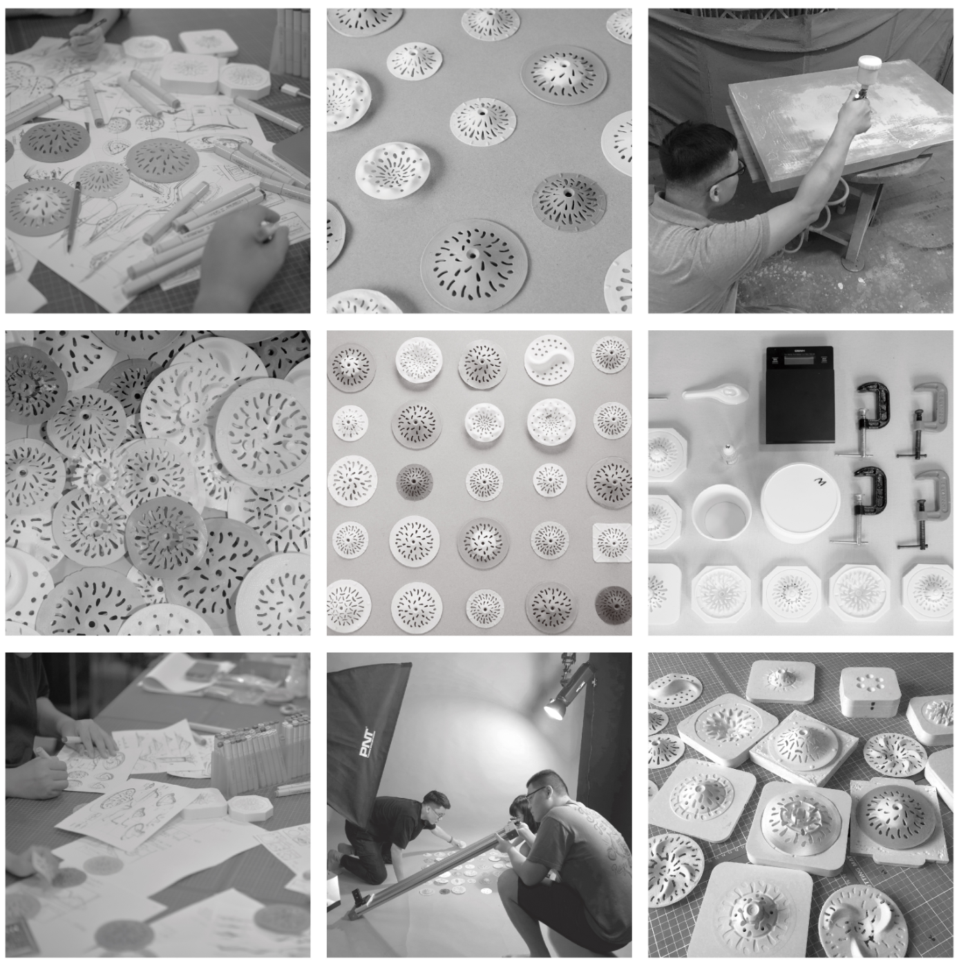 冒頭の動画でも一部ご紹介していますが、穴の形、水流、素材の厚さ、山型なのか谷型なのか、、無数の試行錯誤がそこにあります。