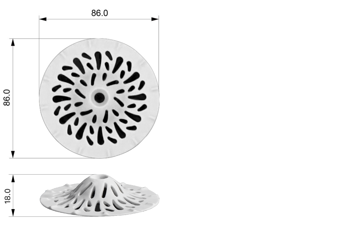 ※製品裏側の輪っか状の部分は水流を整えるための部分です。排水口のサイズには関係ありませんので、ご安心ください。