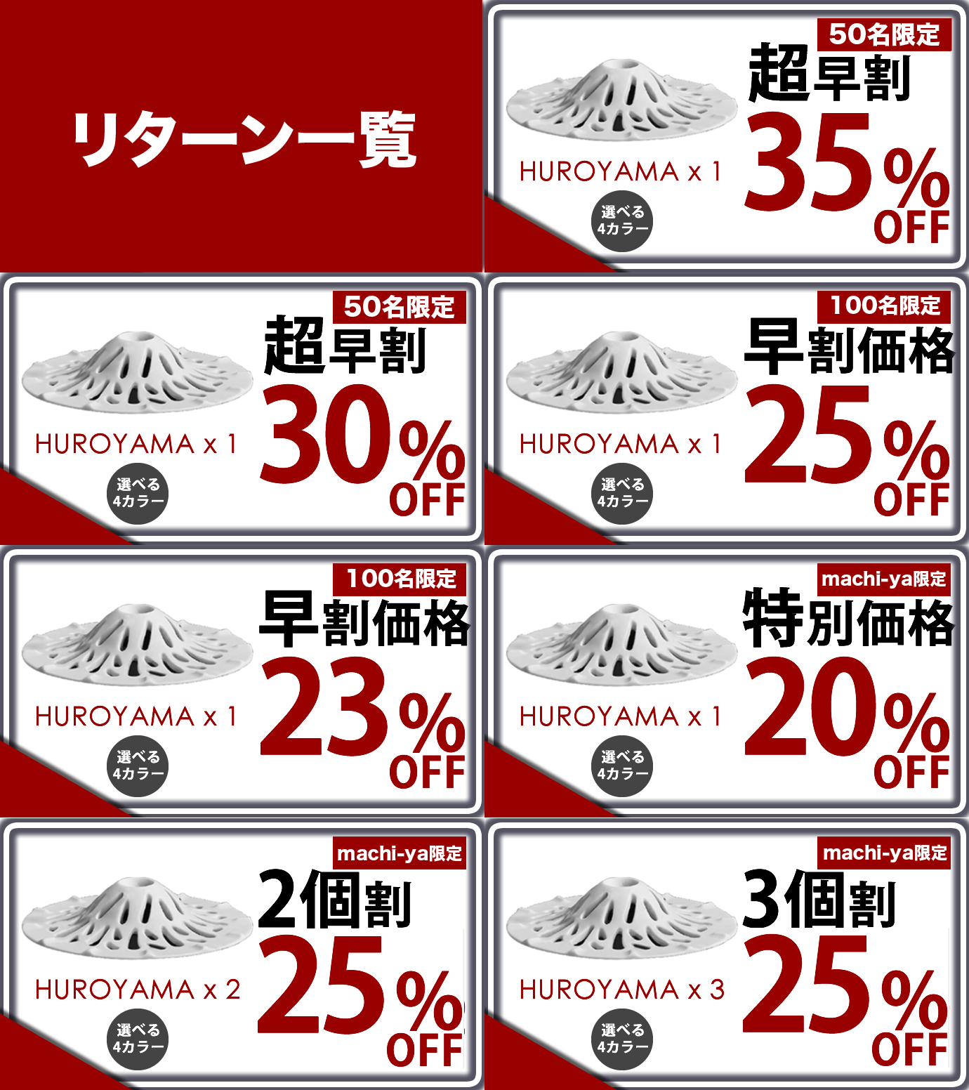 ※ リターン価格とは別にcampfire(machi-ya)のシステム利用料として1支援毎に200円(税別)が支援者様の負担となります。尚、このシステム利用料はcampfireが受け取るもので、当社が受領するものではございません。