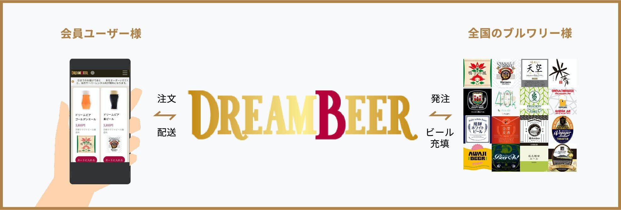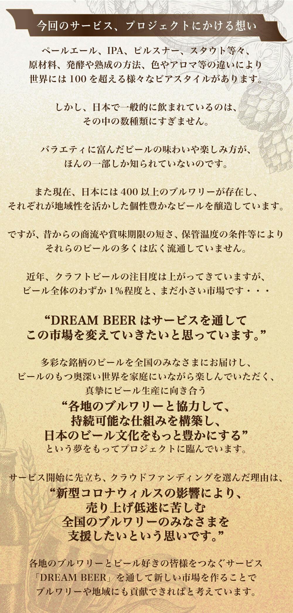 DREAM BEERは地方のクラフトブルワリーと全国の消費者を繋ぐ、画期的なサービスです。