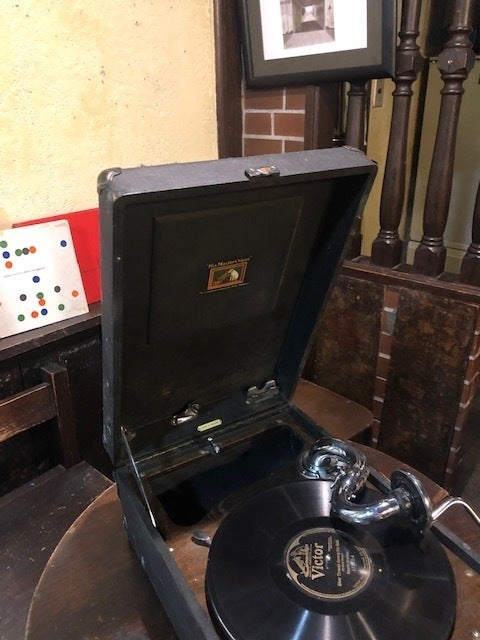写真のポータブル蓄音機もとても良い音で再生可能です。