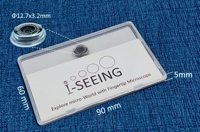 重さはわずか0.4g。 また非常に薄く、厚さはわずか3.2mm。 スマホに装着しても、まったく目立ちません。まさに指先サイズの極小顕微鏡レンズです。