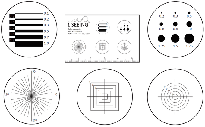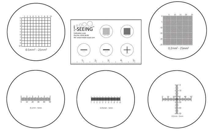 観察対象の正確なサイズを測定するため、専用アプリ「i-Seeing」や顕微鏡のスケールバーを校正するのに使用できます。