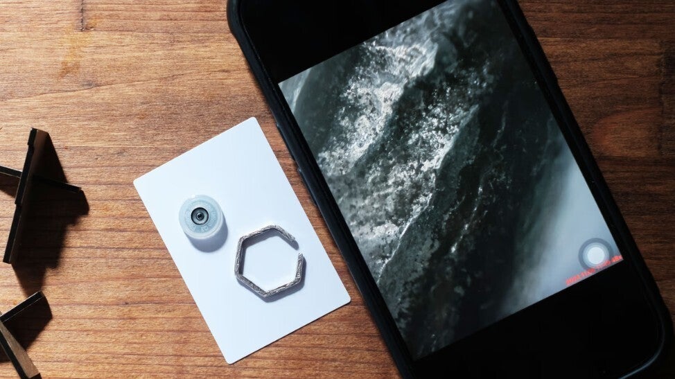 上の画像はなんと、スマホと「指先に乗るほど小さいマイクロレンズ」で観察している様子なんです。