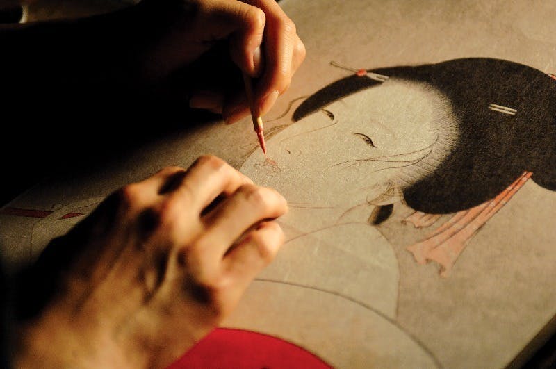 浮世絵を担当したのは、今や『STAR WARS』を浮世絵で描くなど飛ぶ鳥を落とす勢いの浮世絵師・石川真澄。撮影当時“六代目歌川国政”として、劇中で描かれる美人絵、矢太郎の手元の吹き替えまでも担当。浮世絵描写のリアルは彼の存在なくしてあり得ず、劇中の矢太郎が左利きなのも、石川自身が左利きであることと写楽にまつわるミステリアスな風説が合致したもの。