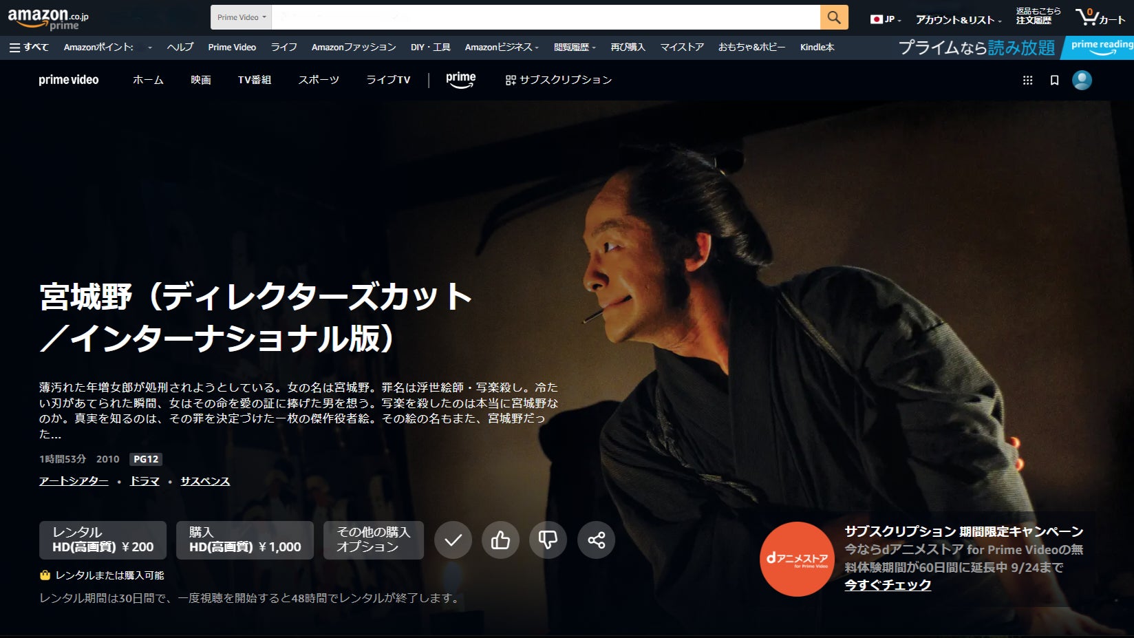 2024/09/20 17:085年間、Amazonプライムビデオで好評を博してきましたが、この度、大幅にグレードアップし、日本での配信を解禁いたしました。https://www.amazon.co.jp/gp/video/detail/B0D6WXRVMM/ref=atv_dp_share_cu_r【何が変わったのか?】・画質の革命:ポジフィルムからテレシネしたHDリマスター版から4Kデジタルリマスター版へ。HDリマスター版は映画館のスクリーンのような味わいはあるものの、現代の感覚では「画面が暗い、汚い」と言われることもありました。4Kデジタルリマスター版の制作にあたり、世界最高峰の技術を誇るIMAGICAのアーカイブチームが担当。ネガフィルムからの高精細なスキャンにより、かつてないクリアな映像美を実現しました。・物語の深掘り:インターナショナル版制作にあたり、新藤茂先生の監修のもと、冒頭の浮世絵の解説をブラッシュアップ。より深く、より豊かに物語の世界観に浸ることができます。【なぜ、今、この『宮城野』なのか?】アメリカ、イギリス、オーストラリアなど、世界中で高い評価を得た本作。その魅力は、時代を超えて多くの人々の心を掴む、普遍的なテーマと、美しい映像美にあります。今回、4Kリマスター版として生まれ変わった『宮城野(ディレクターズカット/インターナショナル版)』は、まさに本作の最終形態。大スクリーンで観るような、息をのむような映像体験を、ご自宅で、お好きな時に、お楽しみいただけます。皆さまの変わらぬ応援が、制作活動の大きな支えとなっています。これからも、より多くの方々に『宮城野』をお届けできるよう、邁進してまいります。引き続き、温かい応援をよろしくお願いいたします! もっと見る豪州アマゾンでの配信がはじまりました!