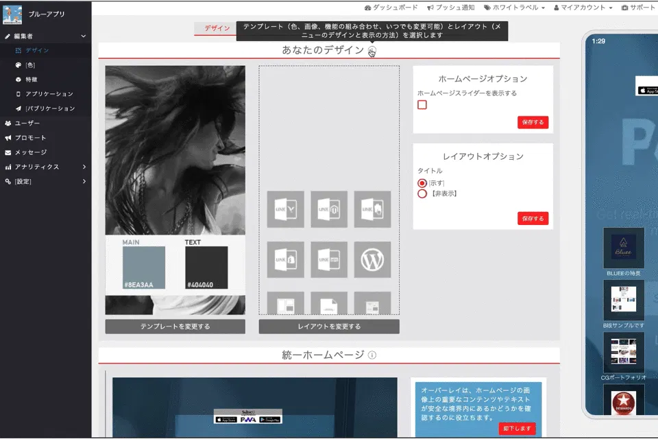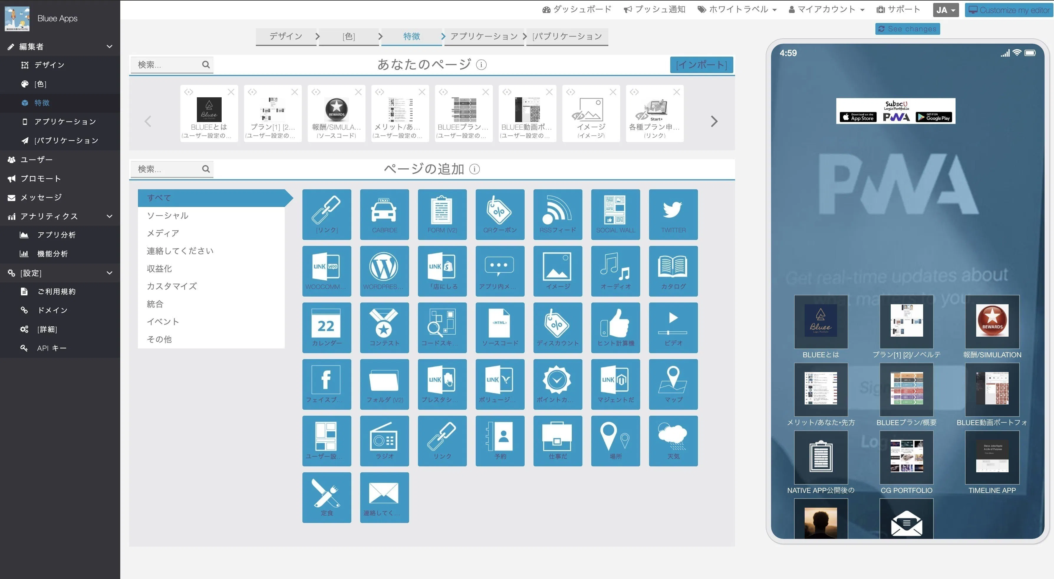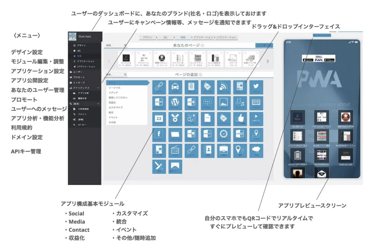 Blueeは、プログラミング不要のiOS、Androidアプリ制作ツールです