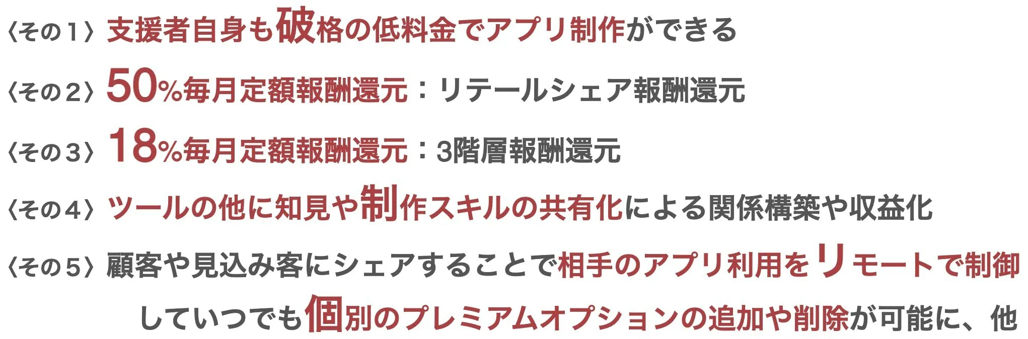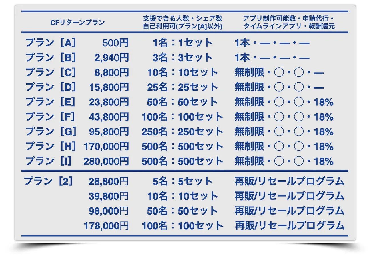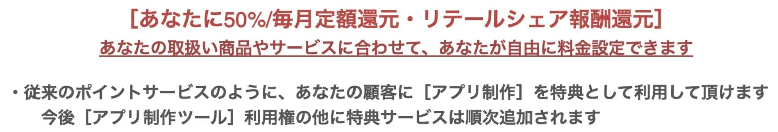 アプリの制作可能数、Webサイトビルダー、報酬還元の有無などが変わります