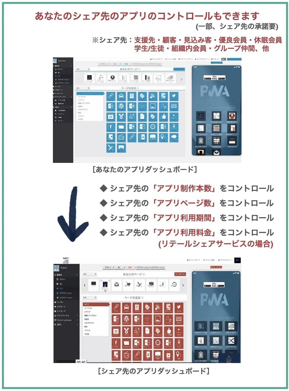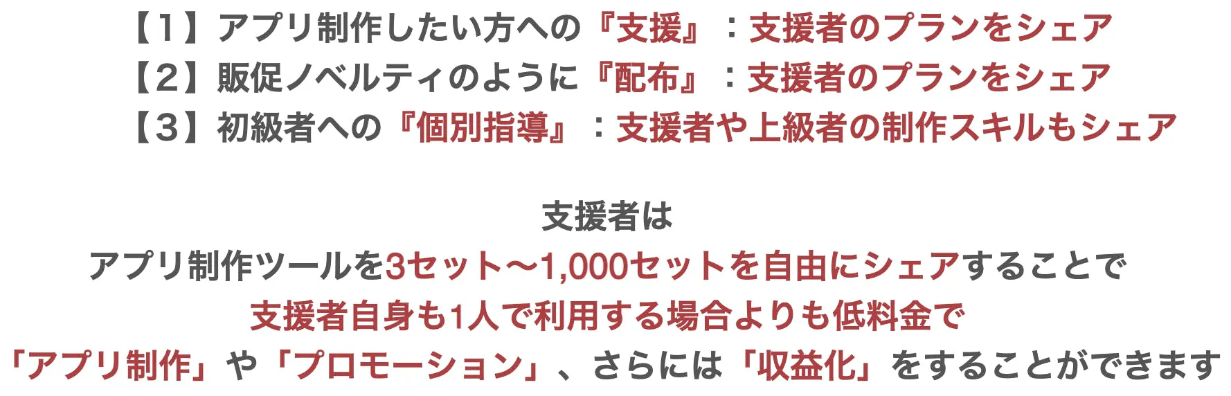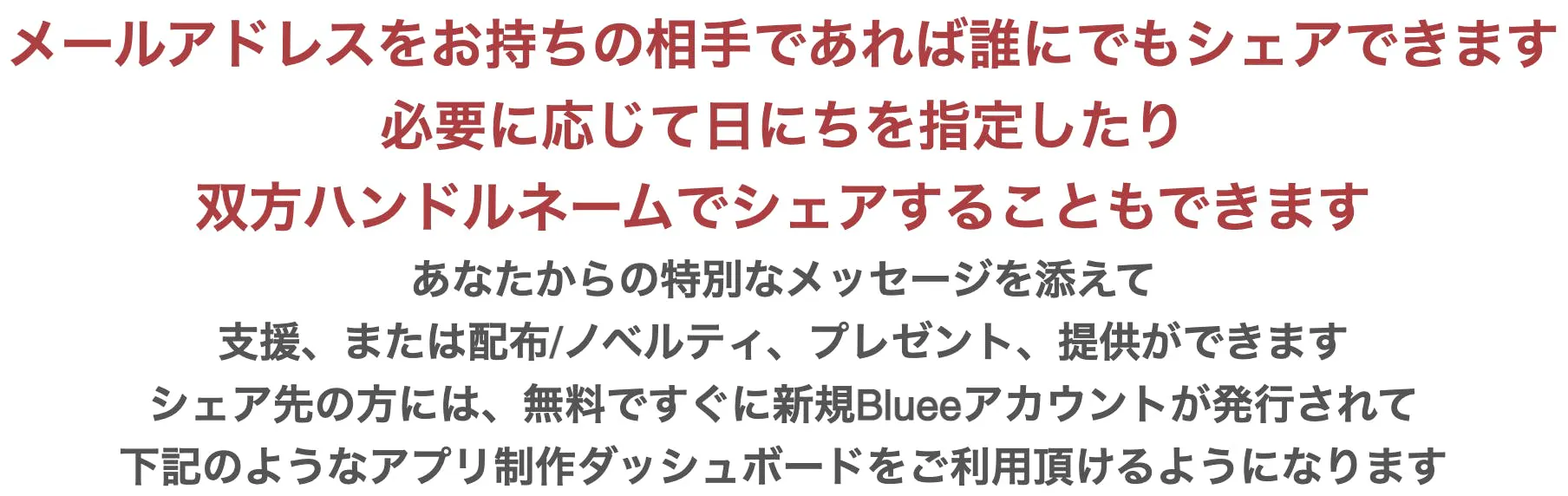 ※シェアリングサービスはアプリ制作ツールの他に鋭意追加、提供されます