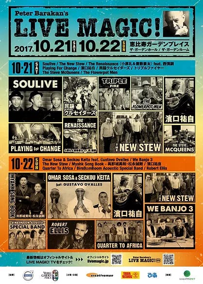 Soulive / The New Stew / The Renaissance <小原礼&屋敷豪太> feat. 西慎嗣 / Playing For Change / 濱口祐自 / 民謡クルセイダーズ / トリプルファイヤー / The Steve McQueens / The Flowerpot Men