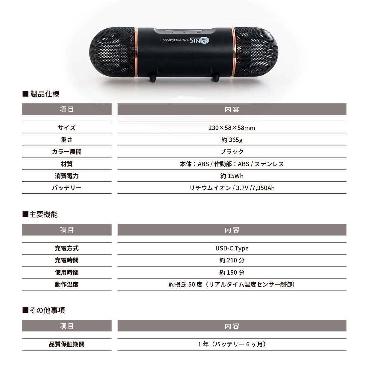 「Portable Shoe Care SIN藥」は、これ1台で必要な機能が全て揃っています。