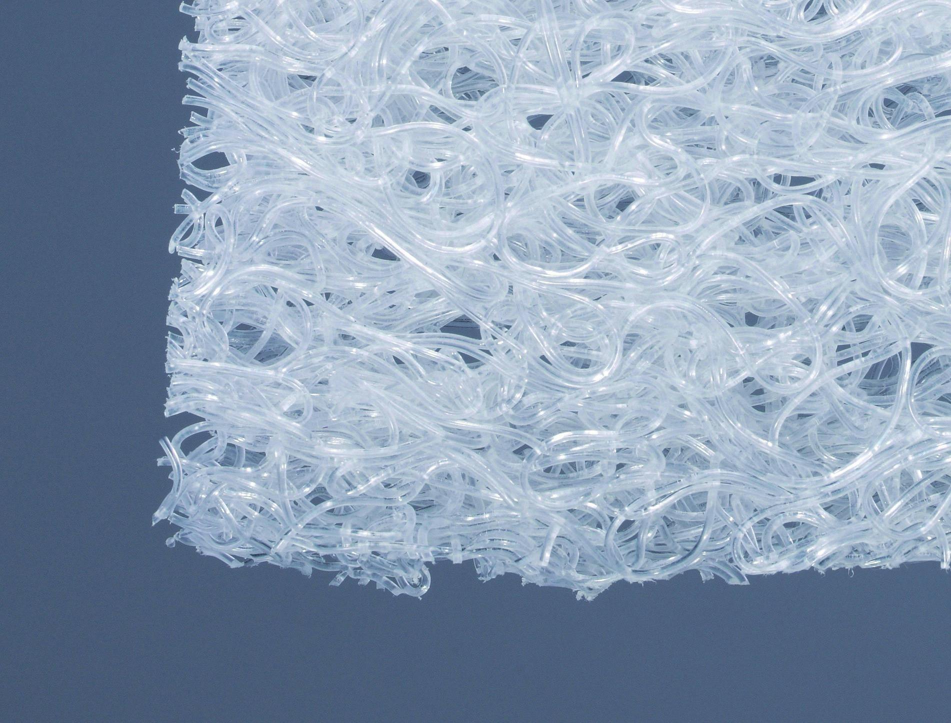 このクッションの素材は 「シーコアスリーディ(C-CORE3D)」という新素材。複雑に絡み合ったファイバー1本1本が体を優しく支えることにより体圧が分散されるため、体にかかる負担を軽減します。