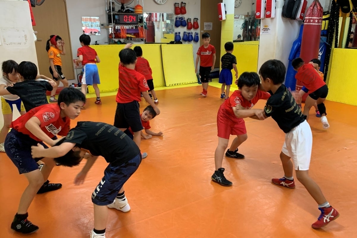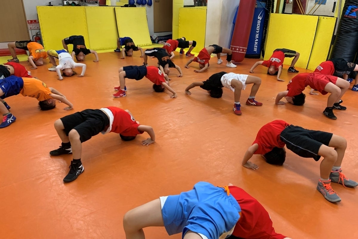このジムは今年でオープン10周年を迎え、格闘技を楽しむ一般会員さんが約100名、レスリングに打ち込む3歳から中学生までの子供達が約80名在籍しております。