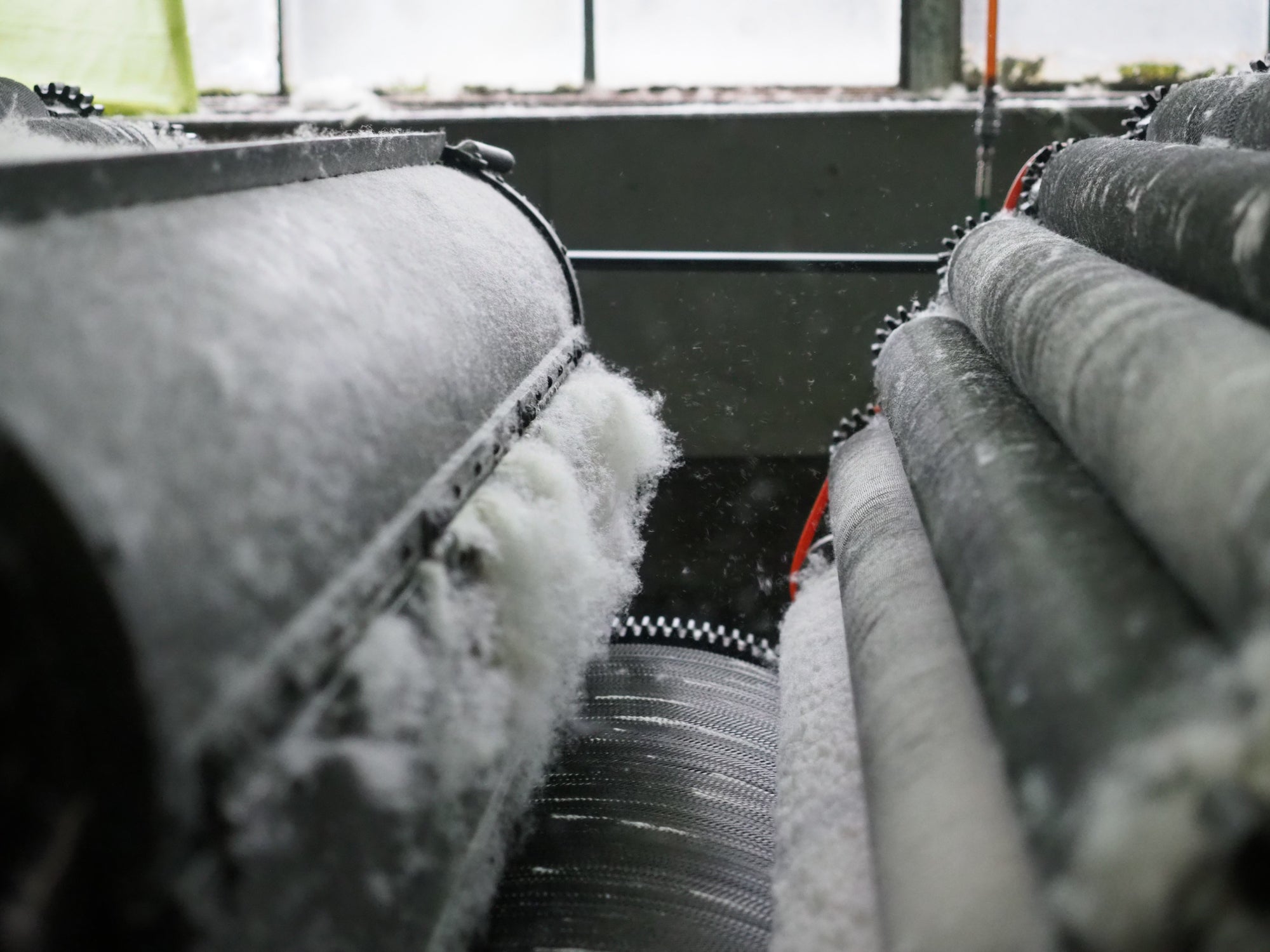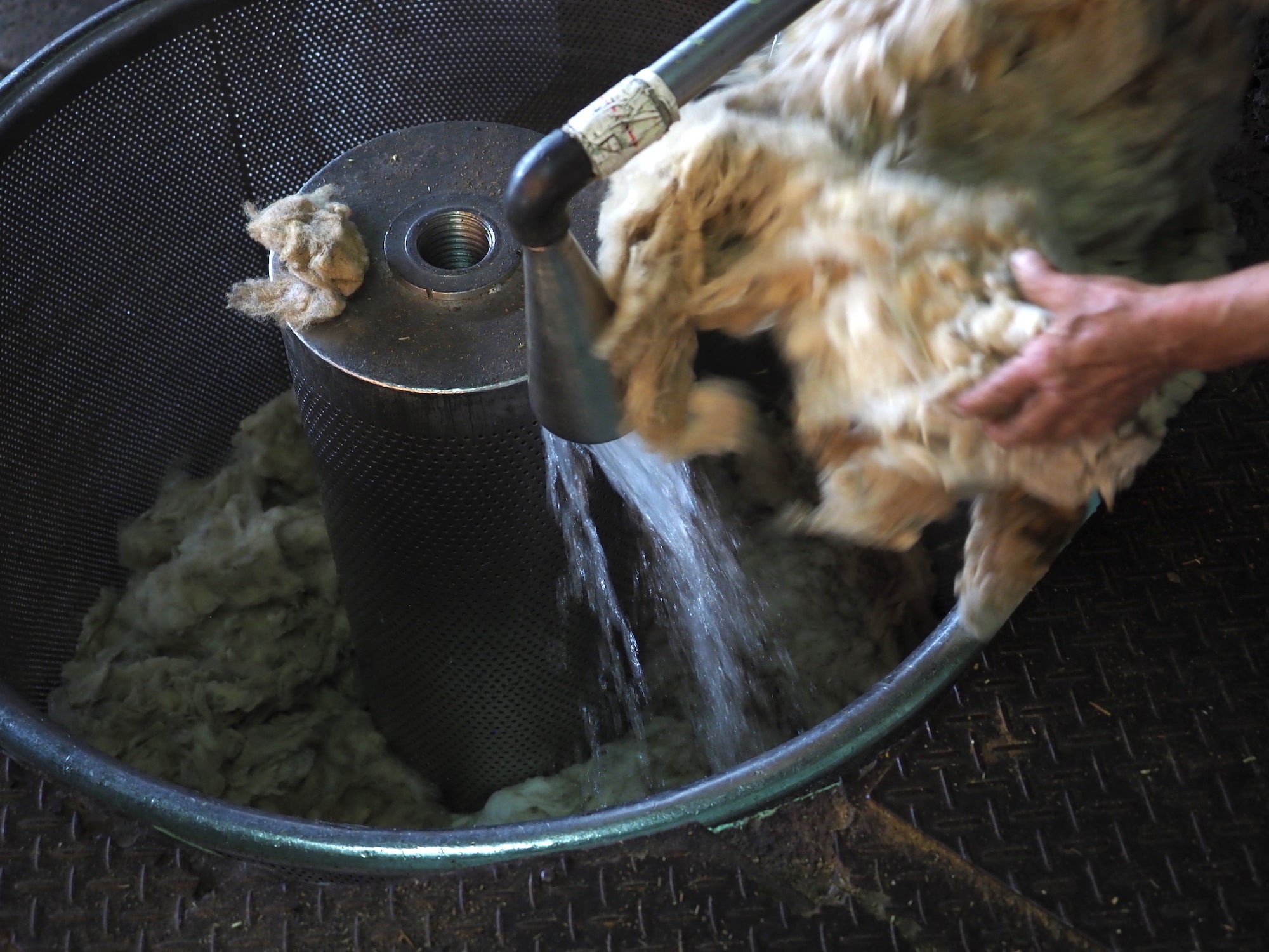 このままでは糸にすることができない為、初めに洗毛という工程で