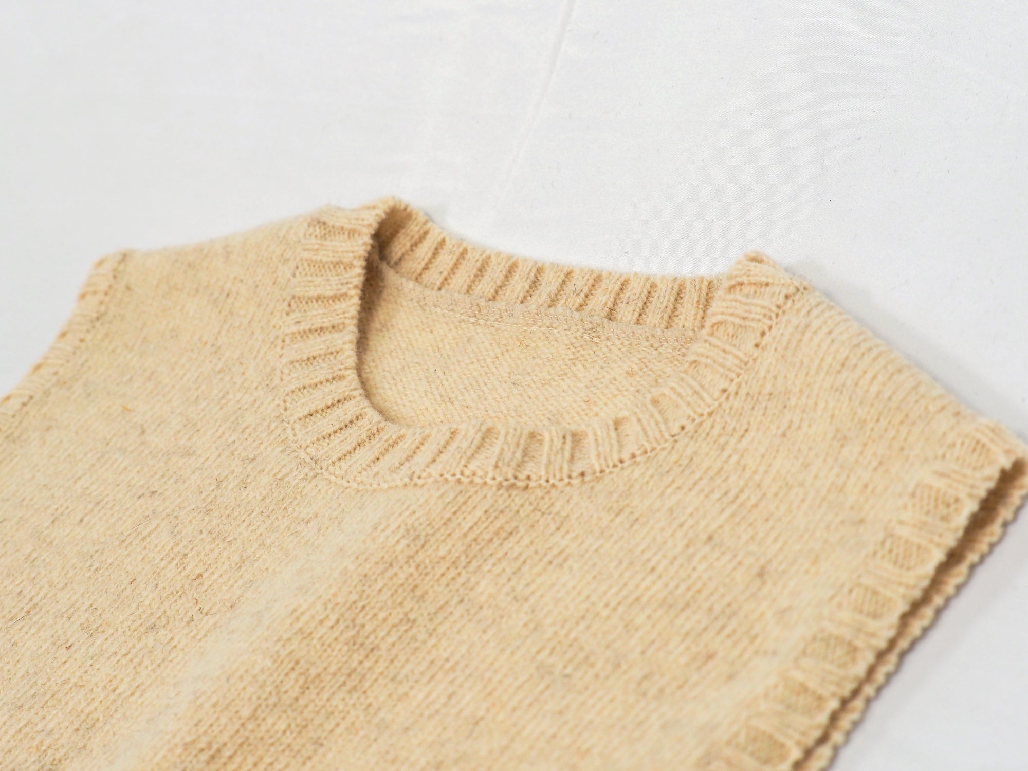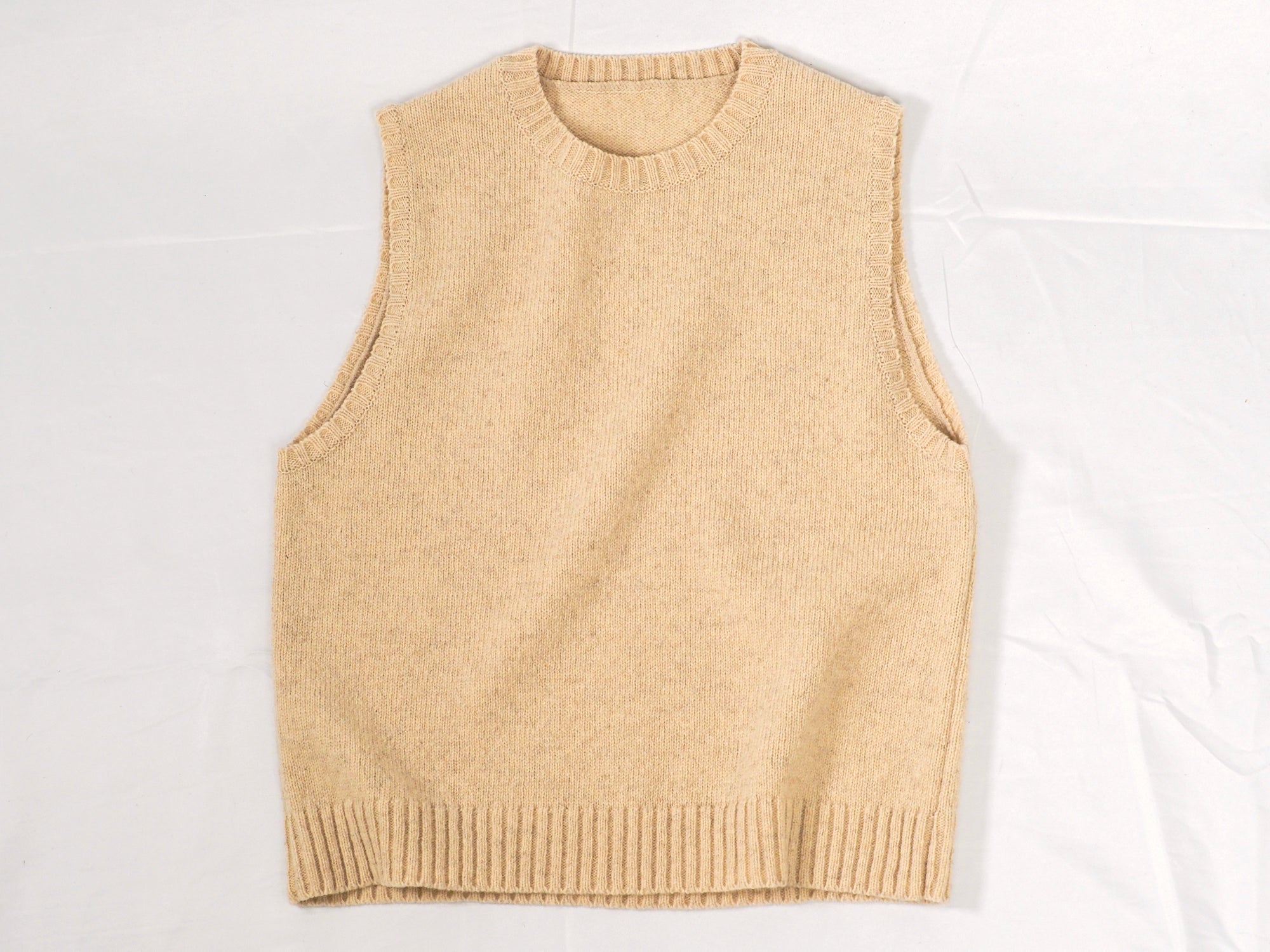 ① 21,000円 峯村サフォーク ニットベスト(生成り・ブラックの2色・各3サイズ)