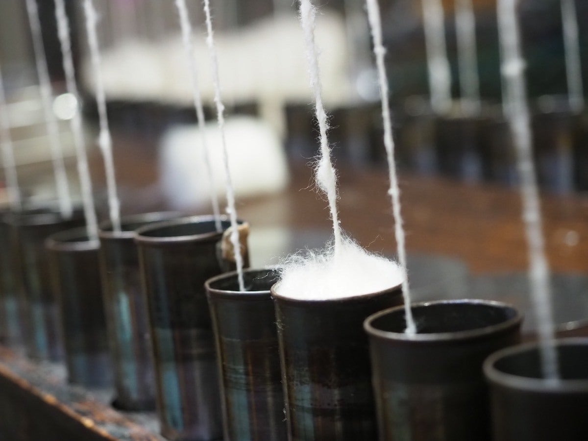尾州産地は昔からウールの産地として有名ではありますが、実はその羊毛のほぼ100%が