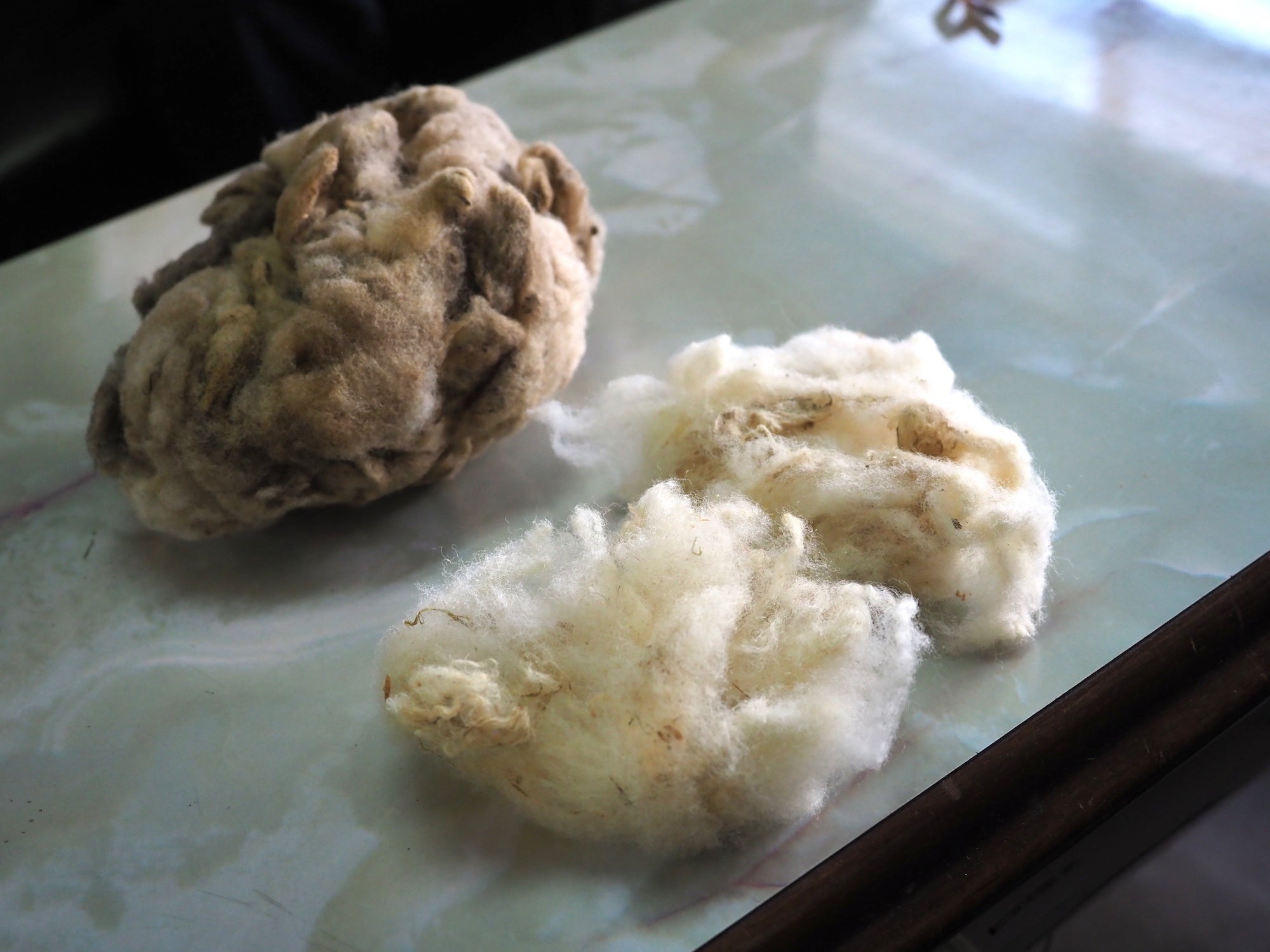 洗い終わった毛は、羊毛本来の優しい匂いになります。