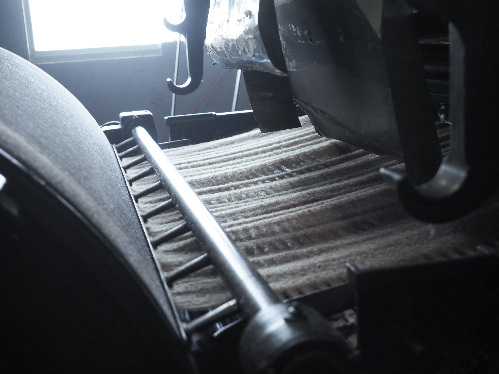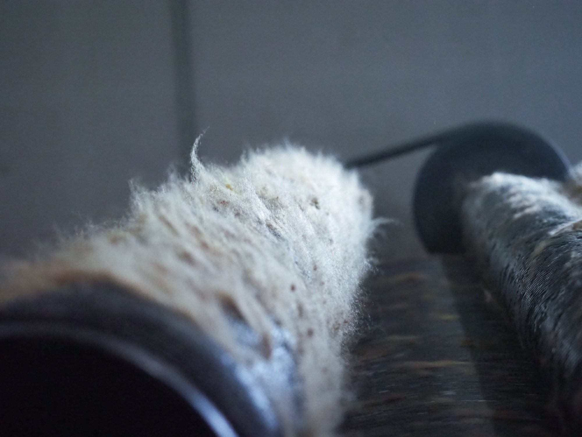 何度も何度も針のついたローラーを通すことで、ゴミを落とすと同時に繊維の流れが整った